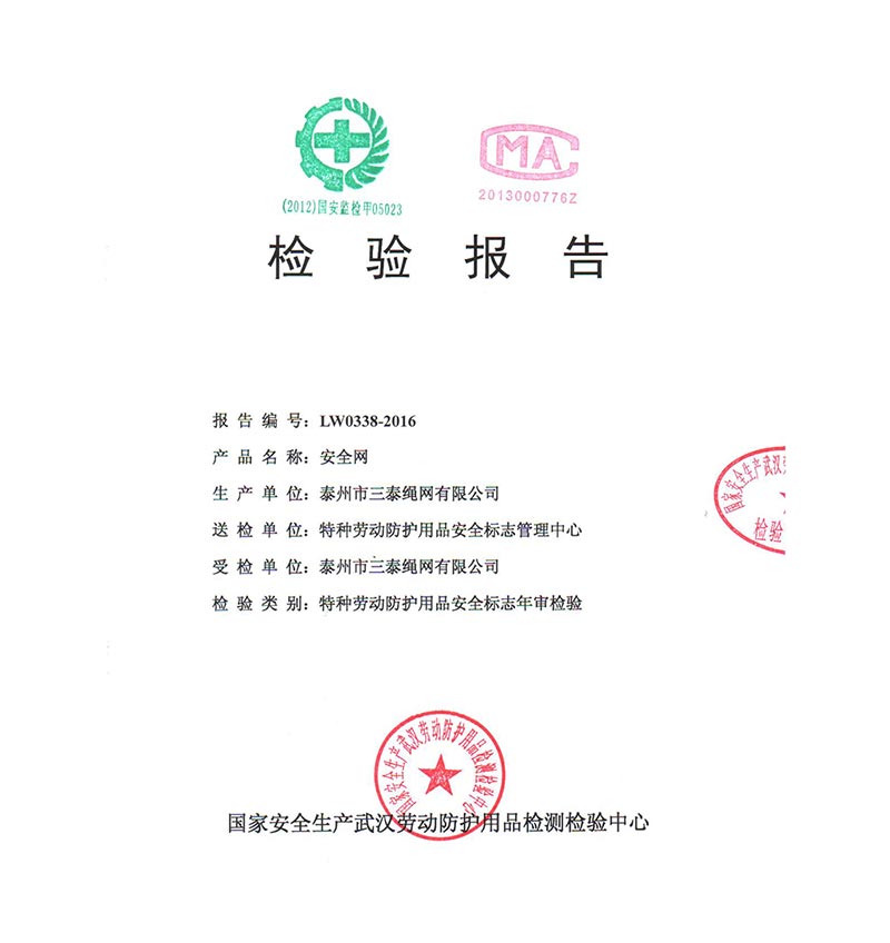 泰州市三泰健康科技有限公司(原 泰州市三泰繩網有限公司),本公司成立于1988年12月22日,至今近30年的生產歷程。多年來的生產經驗,加之我們不斷的創新,已經建設成為集研制、開發、生產、銷售為一體的龍頭企業。公司生產線由捻線車間、制繩車間、織網車間、織帶車間、織(絞)繩車間、安全網組裝車間、安全帶組裝車間、檢驗室等組成。企業現有職工155人,企業管理人員6名,市場研發人員8名,專業質檢人員2名,......
